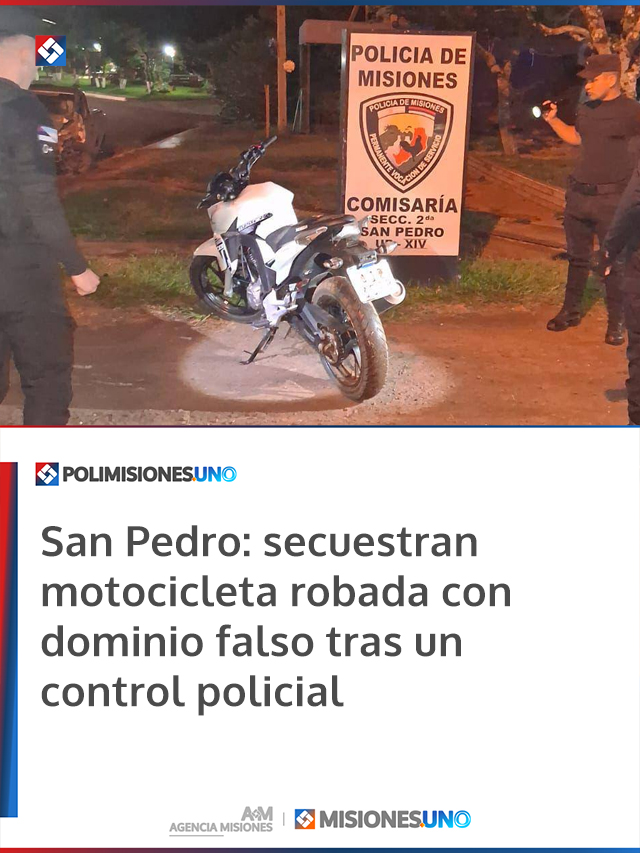 AGENCIA MISIONES.UNO | La Policía de Misiones secuestró una motocicleta [...]