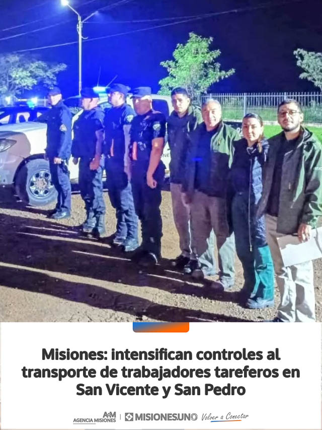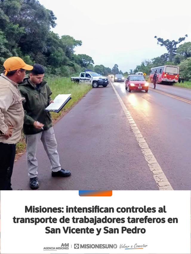 AGENCIA MISIONES.UNO | El Ministerio de Trabajo y Empleo de Misiones, en conjunto con la Policía provincial, llevó adelante operativos de fiscalización del transporte de trabajadores rurales en las localidades de San Vicente y San Pedro.