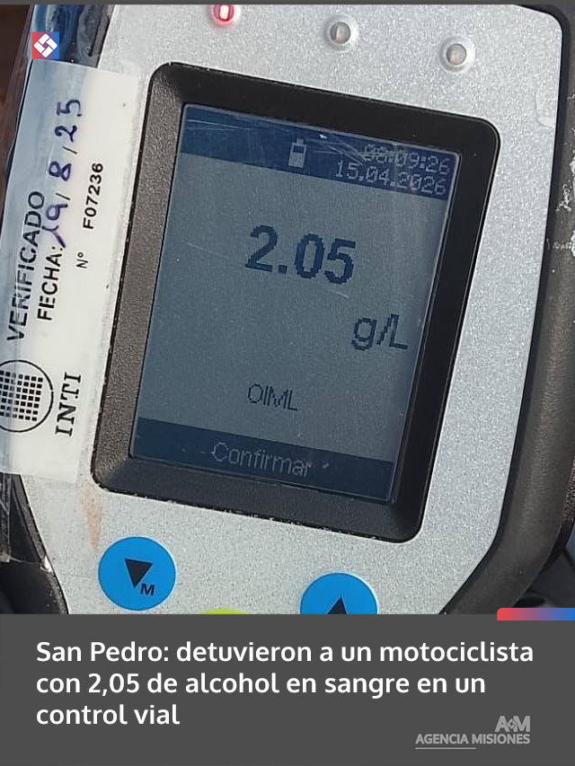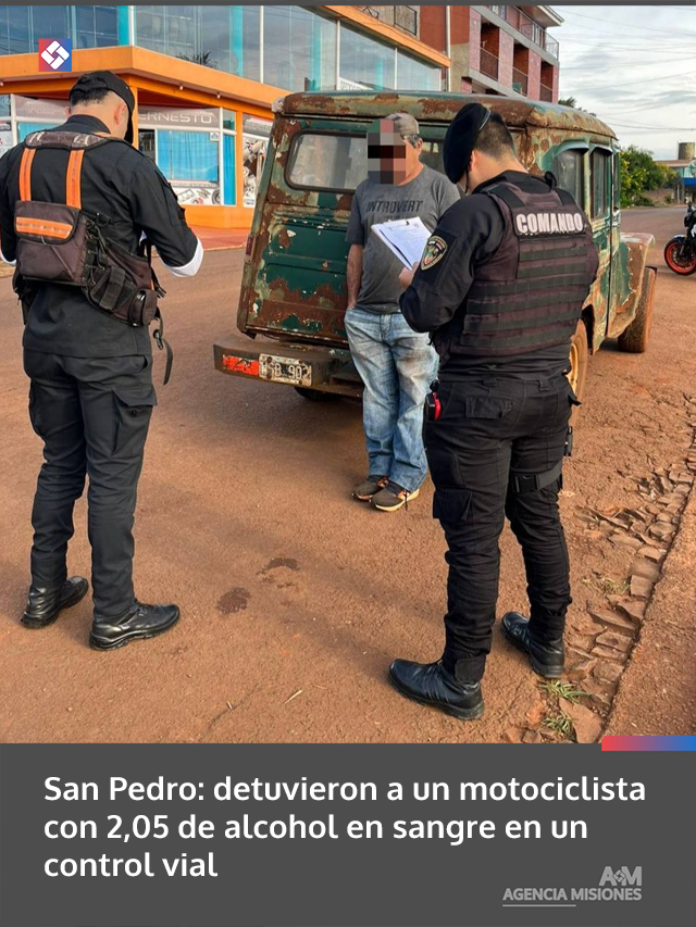 AGENCIA MISIONES.UNO | Un hombre de 33 años fue demorado este miércoles por la mañana en San Pedro tras ser detectado conduciendo una motocicleta con 2,05 gramos de alcohol en sangre durante un operativo de control.